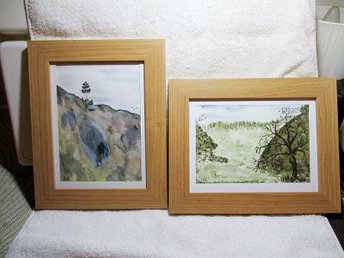 Två inramade akvareller, naturmotiv, 24.5 x 19.5 cm