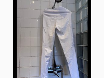 Ridbyxor, vita, junior,midjemått ca 66 cm. Innerbenslängd 68 vm.