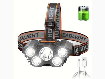 Superstark och mångsidig uppladdingsbar Pannlampa med 5 LED