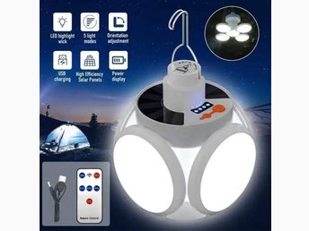 Campinglampa Deluxe - Solcell + USB - Vikbar -