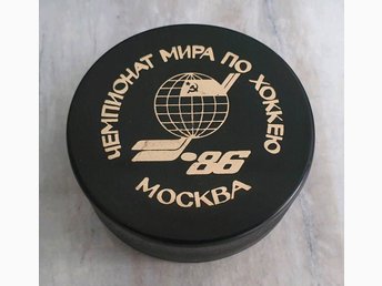 Ishockeypuck VM 1986, tillverkad i Sovjetunionen, raritet