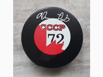 Ishockeypuck signerad Wladislaw Tretjak, lag USSR 1972, tillverkad i Tjeckien