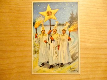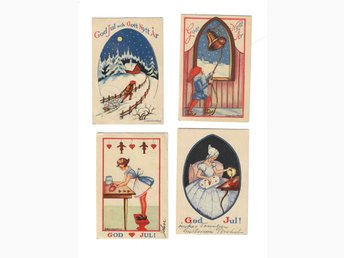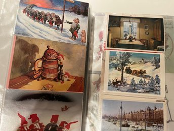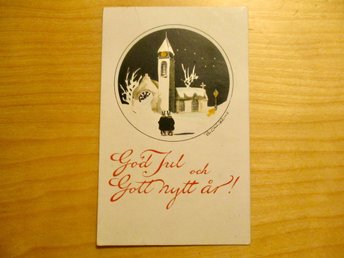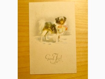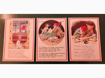 3 st. Julkor Jenny Nyström GOD JUL vykort Eliasson / Jul tomte hund katt gris