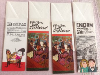 4 st. vintage humoristiska inbjudningskort; förgätmigej crazykort ,