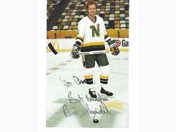 Autograf med dedikation, ishockey Brad Maxwell, Minnesota North Stars.