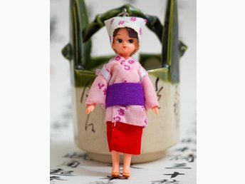 Vintage 90-tals Licca Chan Kusatsu Yumomi Mini Doll Keychain Takara