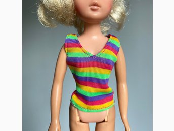 Vintage randig top Barbie gul, grön, lila, rosa Barbiekläder