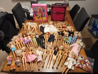 Stor samling av Barbie-dockor med tillbehör och väskor