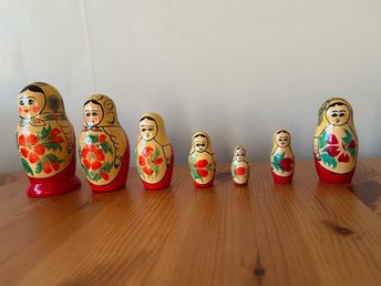 Antik rysk docka ”Babushka” 6 delar, 2 cm till 11 cm.