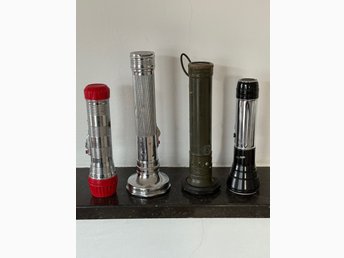 Fyra Vintage Ficklampor; bla Pertrix