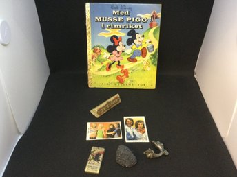Diverse kuriosa, ABBA filmisar, tjurfäktnings nyckelring, Walt Disney bok mm
