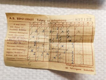 Stryktips Kupong/Talong 4 Maj 1947 Samlar Föremål