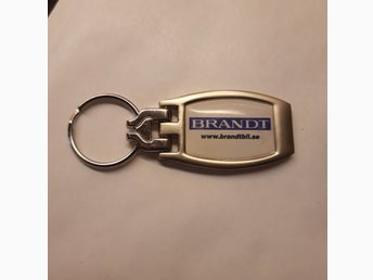 Volvo nyckelring I metall borstat stål med reklam för brandt bil ab.
