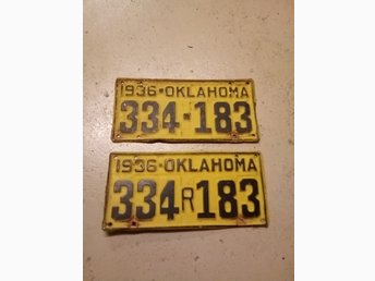 Ett par Amerikanska registreringsskyltar Oklahoma 1936