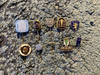 Parti med 10 blandade nålmärken i metall, bilmärken