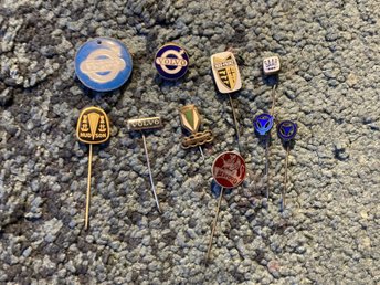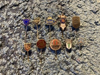 Parti med 10 blandade nålmärken i metall, bil- och cykelmärken