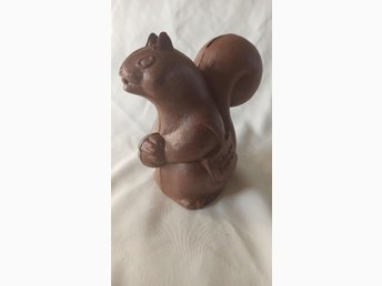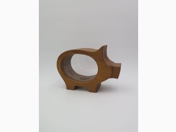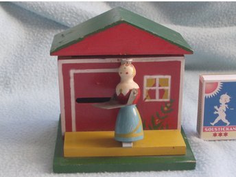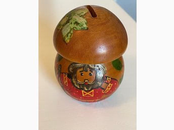 Vintage spargris/sparbössa i trä med tittskåp/ ekorre/ signerad G.J