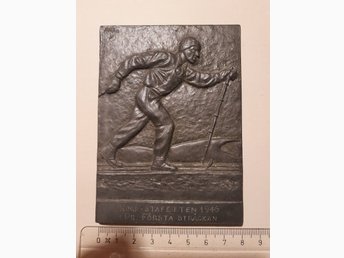 SKIDOR En massiv medalj plakett i metall 11x7 cm, daterad 1946, gravören Akke