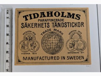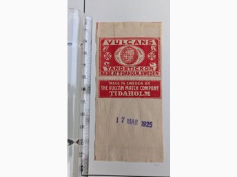 Vulcan Tidaholms tändsticksfabrik nr 5 sitter i skyddad plastficka