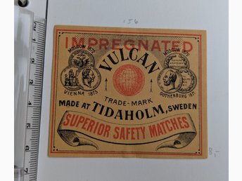 Tändsticksask Vulcan Tidaholm 1800 talet