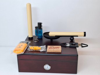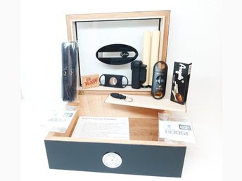 Cigarrhumidor Angelo + tillbehör (Cigarr Humidor tändare snoppare borr fuktare )