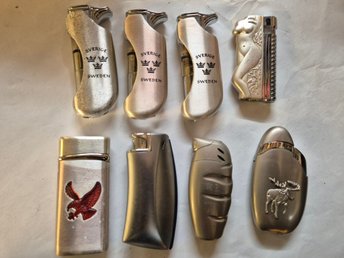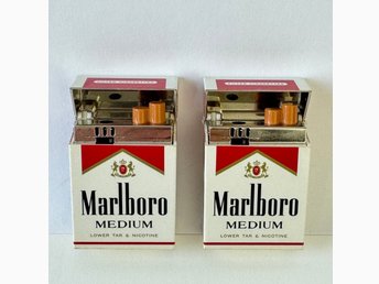 2st vintage påfyllningsbara tändare, Marlboro, tobakiana, cigaretttändare, flip