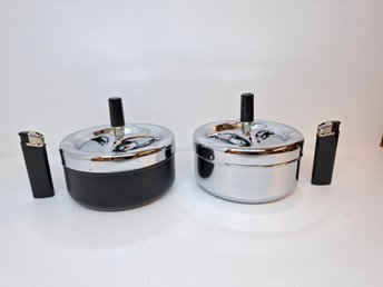 Två Askkoppar + Två Tändare ("Tryck och Snurr" Ask kopp Cigarett Tobak askkopp)