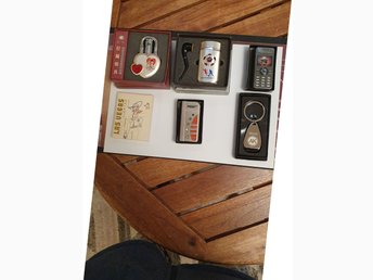 5 oanvända tändare i ask och en öppnare/ nyckelring ak