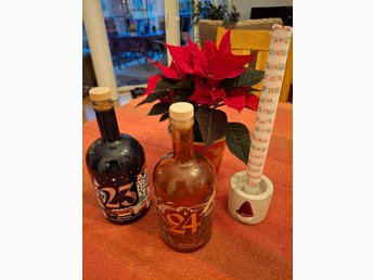 2 Tomma Blossa glöggflaskor med kork från julen 2023 och 2024
