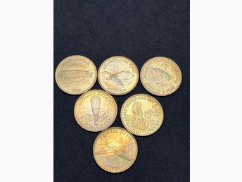 6 pcs Shell commemorative token set Zeppelin Da Vinci , etc