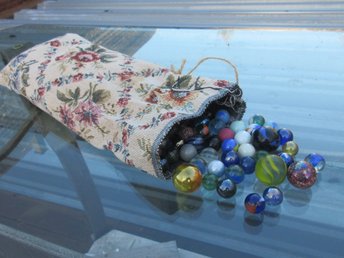 GAMLA FINA SPELKULOR I SIN PÅSE AV GOBELÄNG!
