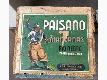 Vintage fruktlåda i trä – Paisano Rio Negro Argentina 1958
