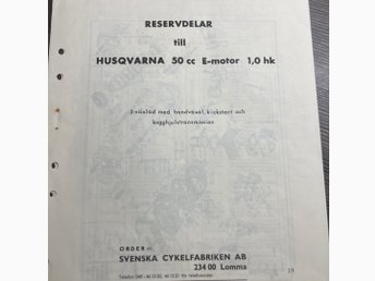 Reservdelskatalog Husqvarna 50cc E-motor 1,0 hk