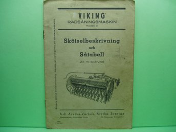 Ab.Arvika-Verken Skötselbeskrivning/Såtabell VIKING Radsåningsmaskin Mod.A..1945