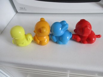 4 st Leksaksdjur i olika färger. Aktivitetsleksak, ta isär sätt ihop