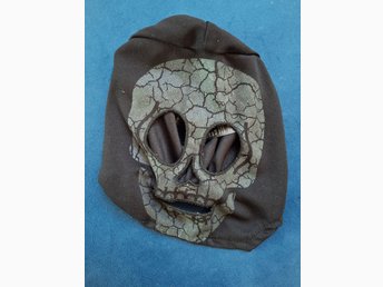 Maske: Sort maske i stof med skelet ansigt str. 104 cm (3-4 år).