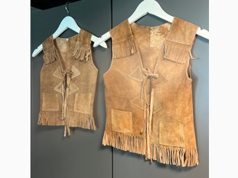 To vintage læderveste med frynser