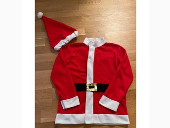 Röd tomtedräkt med luva i fint skick!