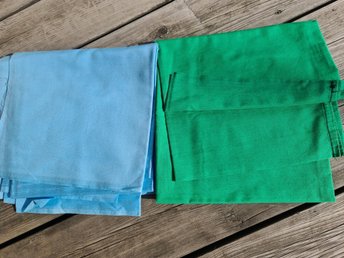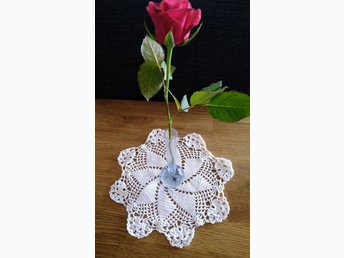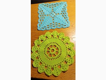 Virkad duk, 2 st, 1 st. fyrkantig ljusblå 17 x 15 cm, 1 st grön rund 18 cm diam