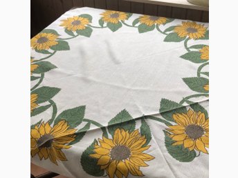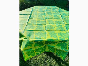 Vacker stor duk I linne med tydligt mönster. Retro!