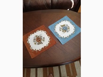2 st dukar, tabletter, med blom-motiv, tryckt mönster, 30 x 30 cm