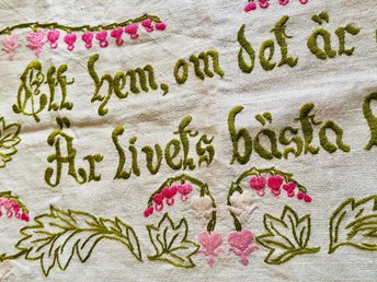 Finaste broderade bonaden med blomster och blader vintage 65x39