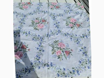 Ny Stor DUK Handbroderad med Rosor och Violer ca 98 x 89 cm