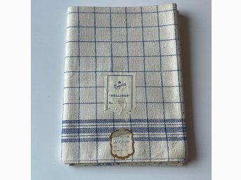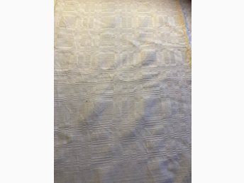 duk, bordsduk, fyrkantig, vit med blå inslag. bomullsväv. 117x109 cm
