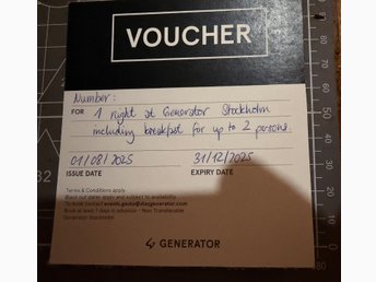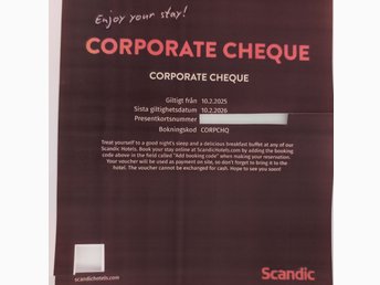 Värdebevis på hotell hotellövernattning, giltig t.o.m. 2026-08-31