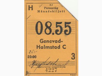 Månadsbiljett persontåg Genevad-Halmstad C 3 klass 08.55