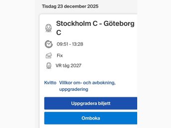 2st Tågbiljetter 23 December Sthlm - Göteborg