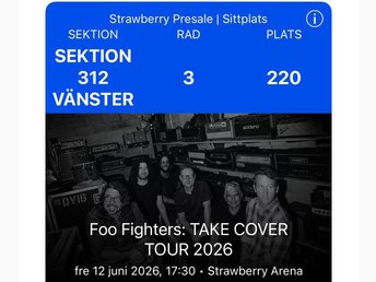 Två stycken ståplatsbiljettter till Foo Fighters: TAKE COVER TOUR 2026