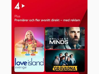 TV4 Play Plus utan reklam. 70 kr rabatt/månad i 6 månader. Värde 420 kr.