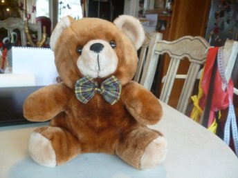 Antique teddy bear jointed straw filled and with squeezer collectible 26 cm